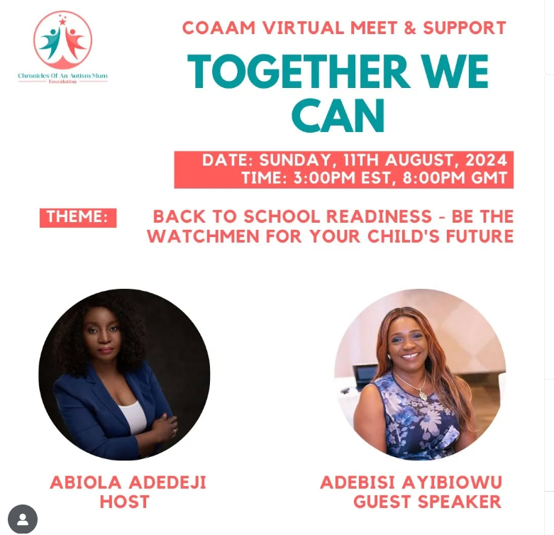 We are excited to invite you to our upcoming Virtual Meet and Support meeting "Together We Can." Our theme this month is "Empowering Independence in Autism - Personal insights and practical strategies for daily living skills" with our guest speaker, Itohan Asibor where we'll gain insights and practical strategies to enhance daily living skills for […]